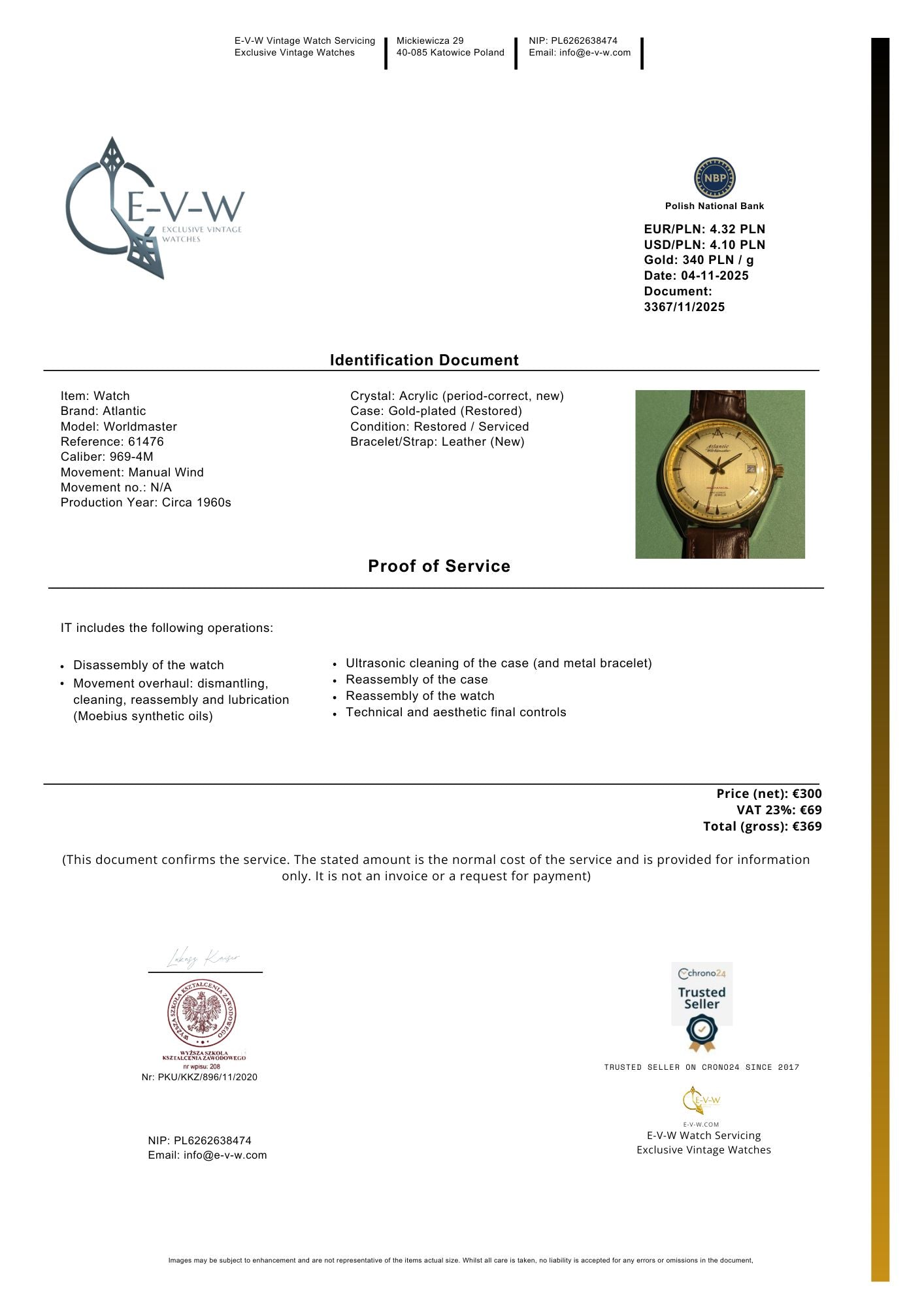 Ayant bénéficié d'une révision complète récente datée du 04-11-2025, cette montre est prête à être portée régulièrement tout en représentant un chapitre important de l'histoire d'Atlantic sur le marché polonais et régional.