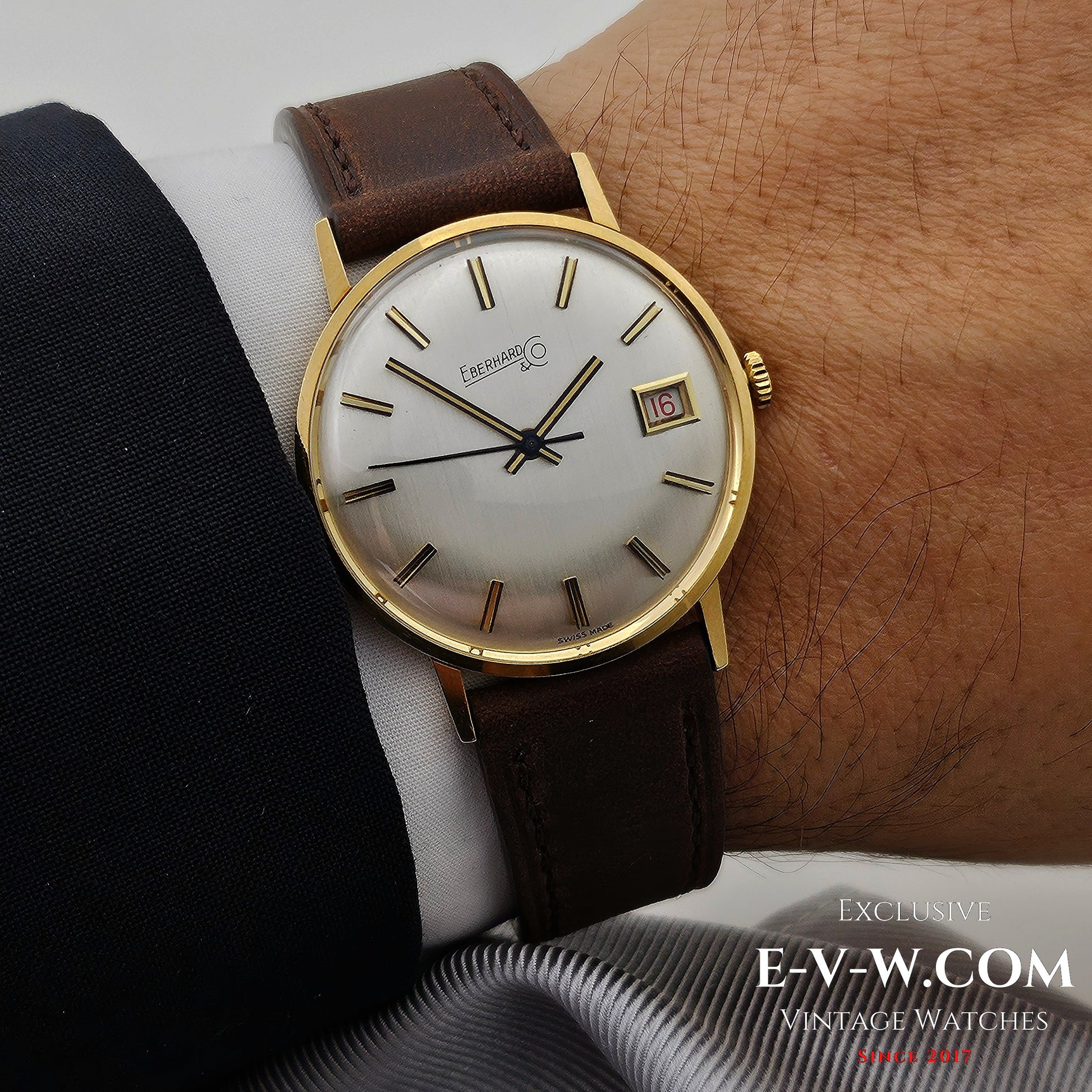 Montre habillée Eberhard & Co en or 18 carats des années 1960 | Rare indicateur de date à roulette | Cal. 236-129 |