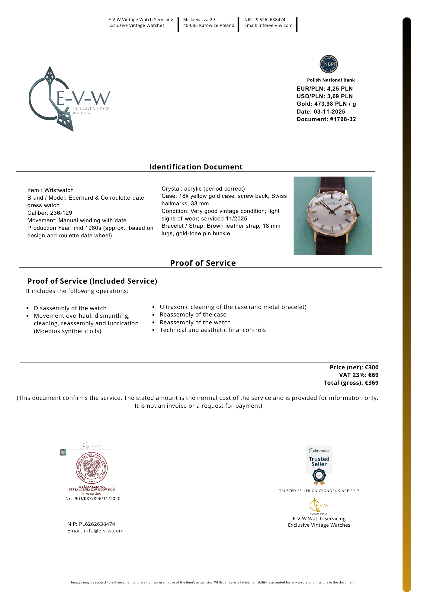Documents : Facture et notre certificat de service valeur 369 € — inclus gratuitement