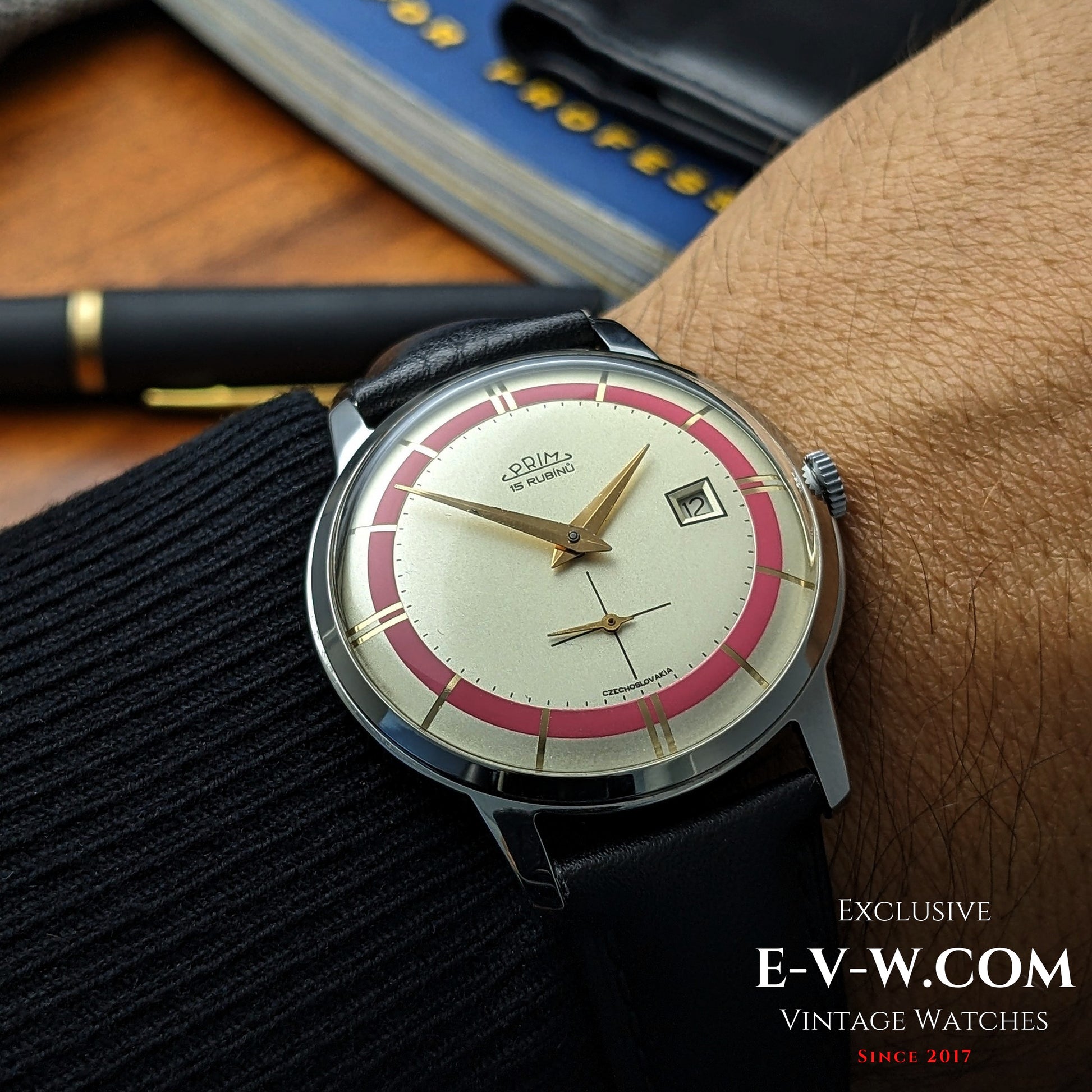 Années 1960 — PRIM — Cadran rose bicolore « œil de bœuf » — Cal. 521 — Vintage 1960 — Révisée