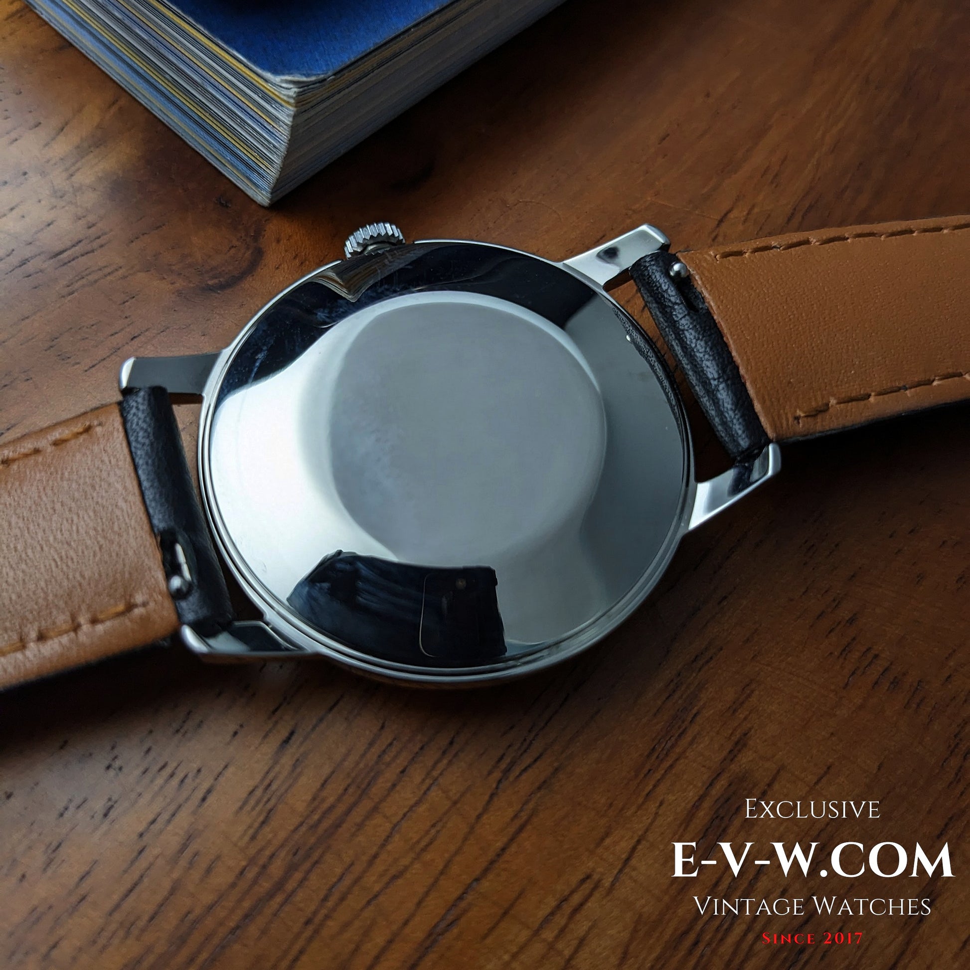 Mouvement : PRIM 52 (poinçon 521), à remontage manuel, 15 rubis, environ 18 000 alternances par heure ; petite seconde ; date