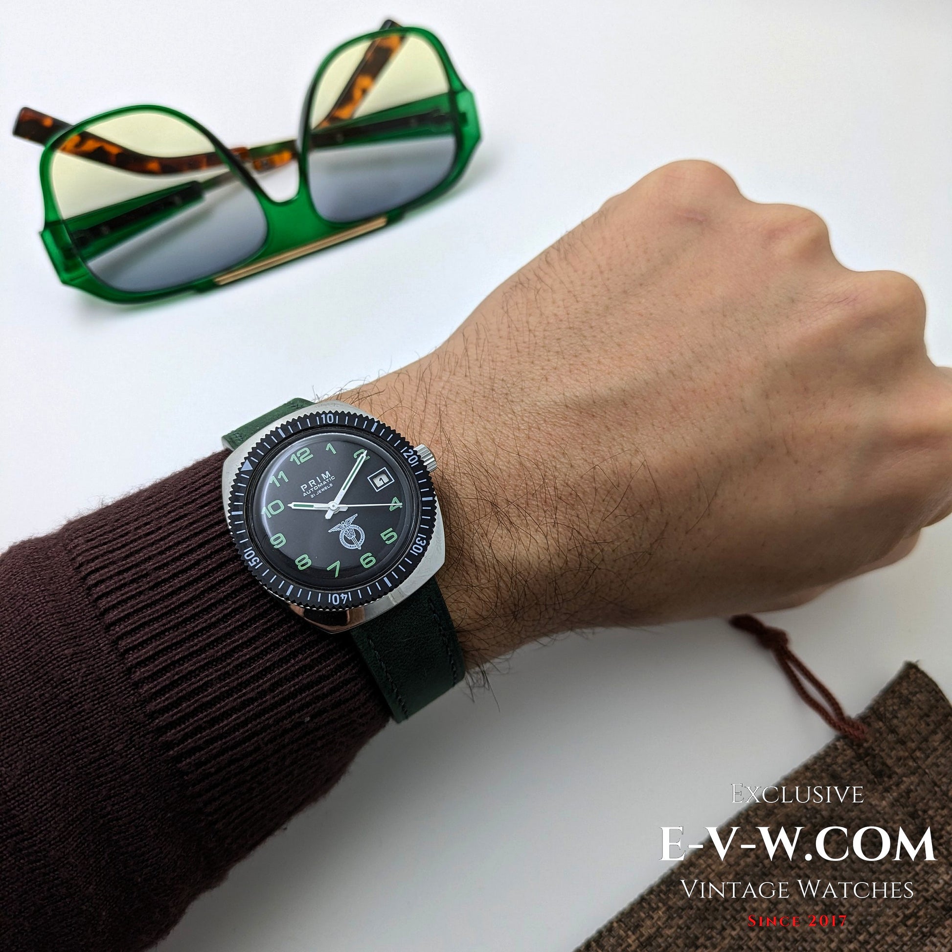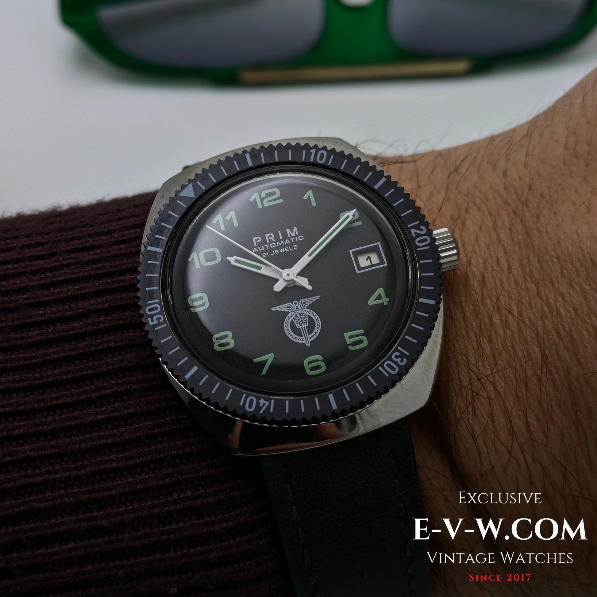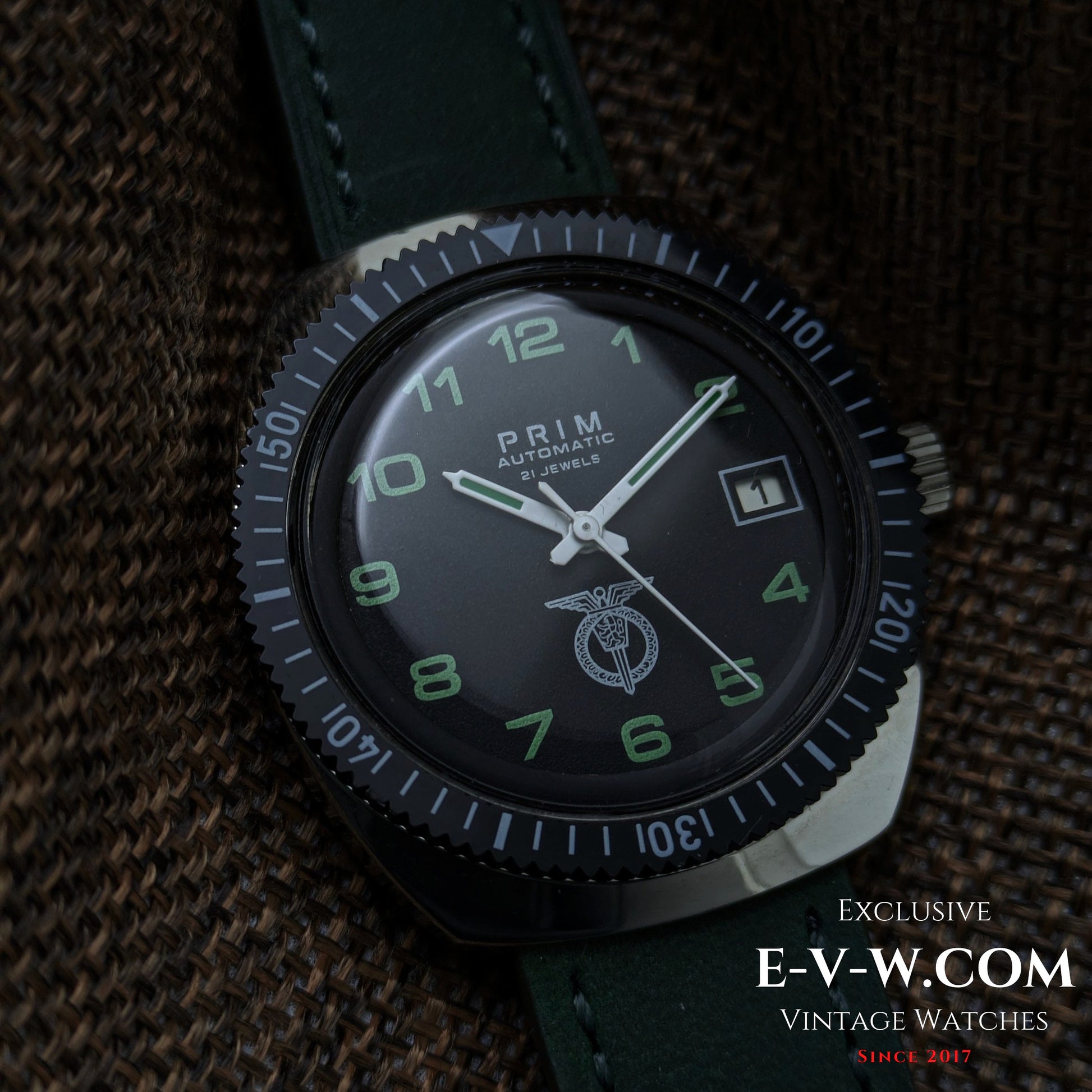 La Prim Automatic, animée par le calibre 960, représente le summum technologique de l'horlogerie tchécoslovaque de la fin des années 1970 et des années 1980. Ce calibre était l'un des mouvements les plus sophistiqués produits par la manufacture Elton de Nové Město nad Metují, doté d'un système de remontage automatique robuste et d'une fréquence d'oscillation élevée de 21 600 alternances par heure pour une précision accrue. Cet exemplaire a fait l'objet d'une restauration complète : le boîtier, le cadran et les aiguilles ont été remis à neuf par des professionnels afin de retrouver son esthétique d'origine. Il constitue une pièce importante de l'histoire horlogère du bloc de l'Est, alliant robustesse et fiabilité à la précision d'ingénierie de la série 9.