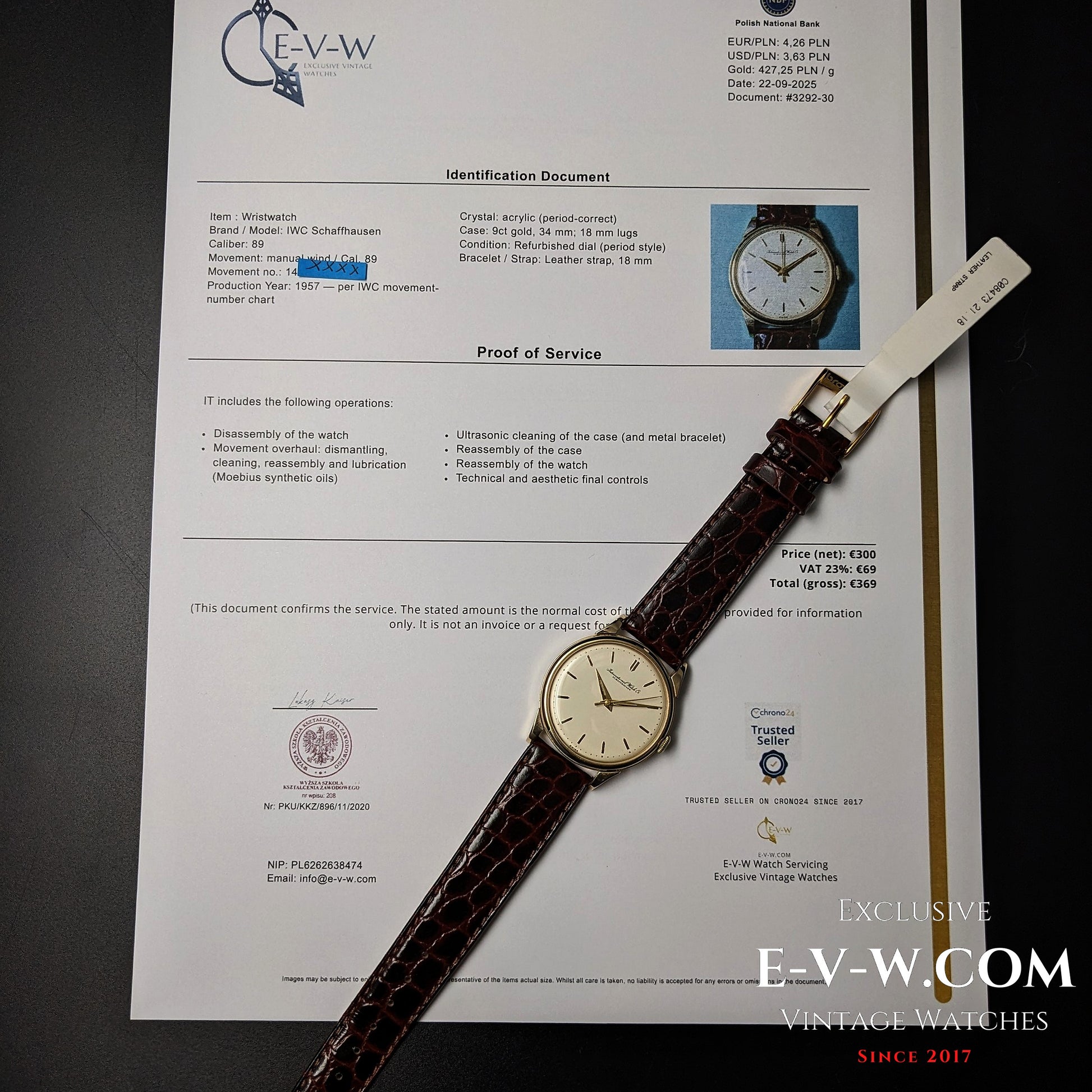 68 ans — IWC Schaffhausen — Montre habillée élégante en or 9 carats — Cal. 89 — Vintage 1957 — Révisée