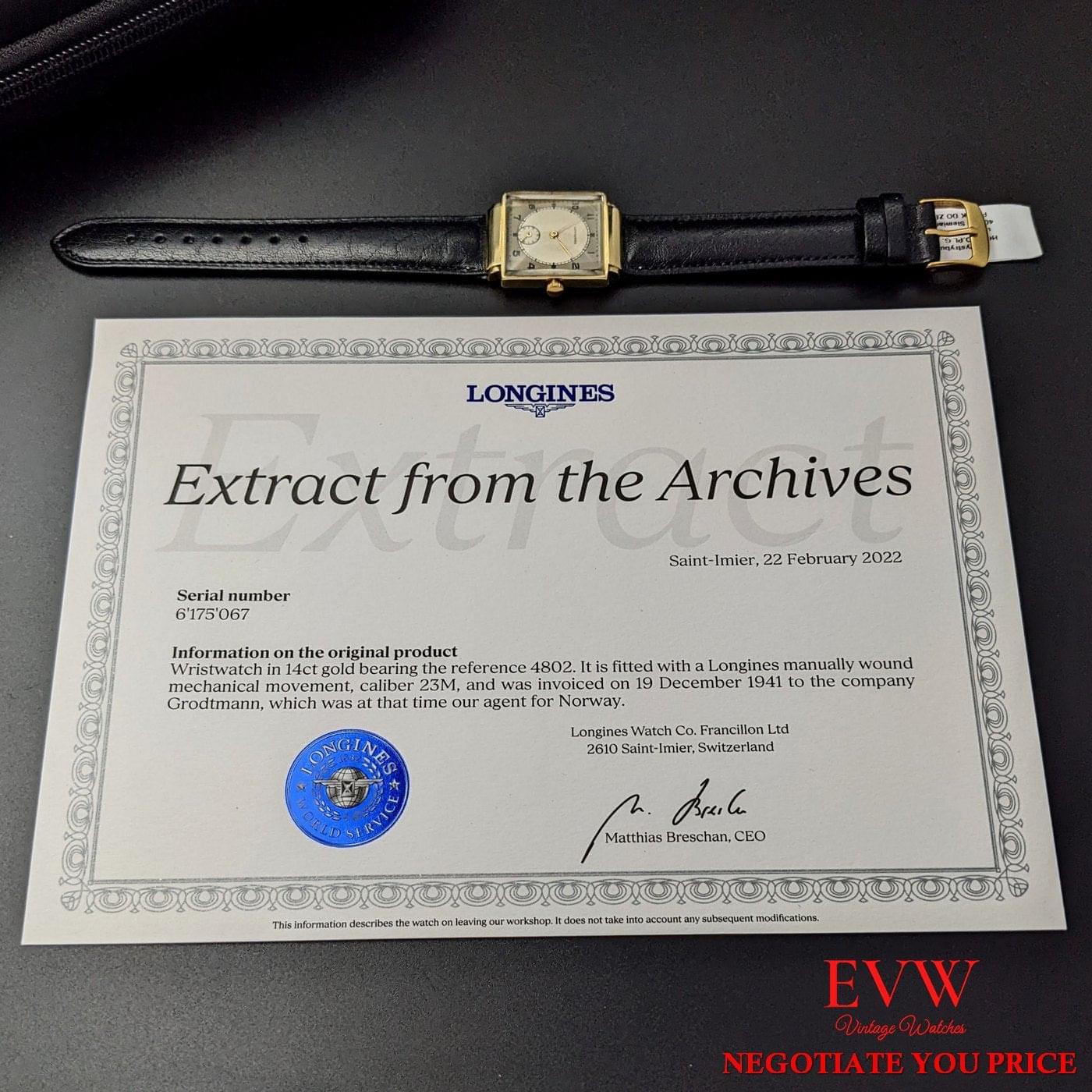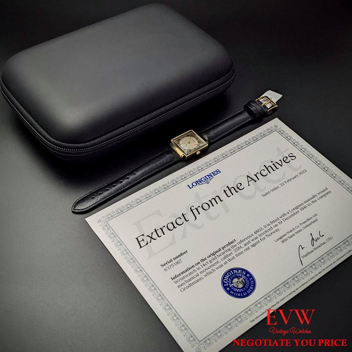 Montre Longines ancienne en or 14 carats de 1941 / Extrait des archives Longines / Entièrement révisée
