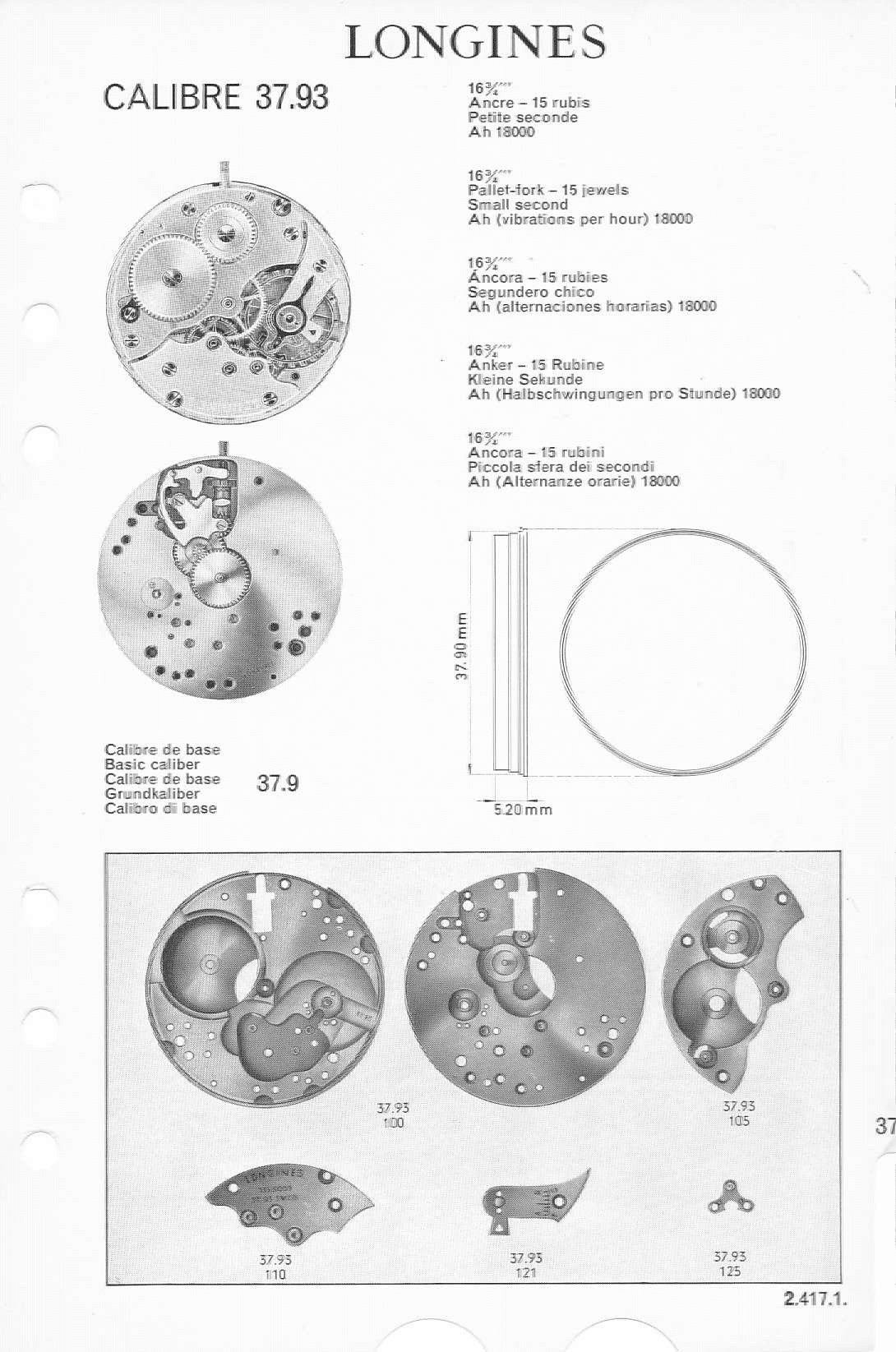• Mouvement : Remontage manuel, calibre 37.93
