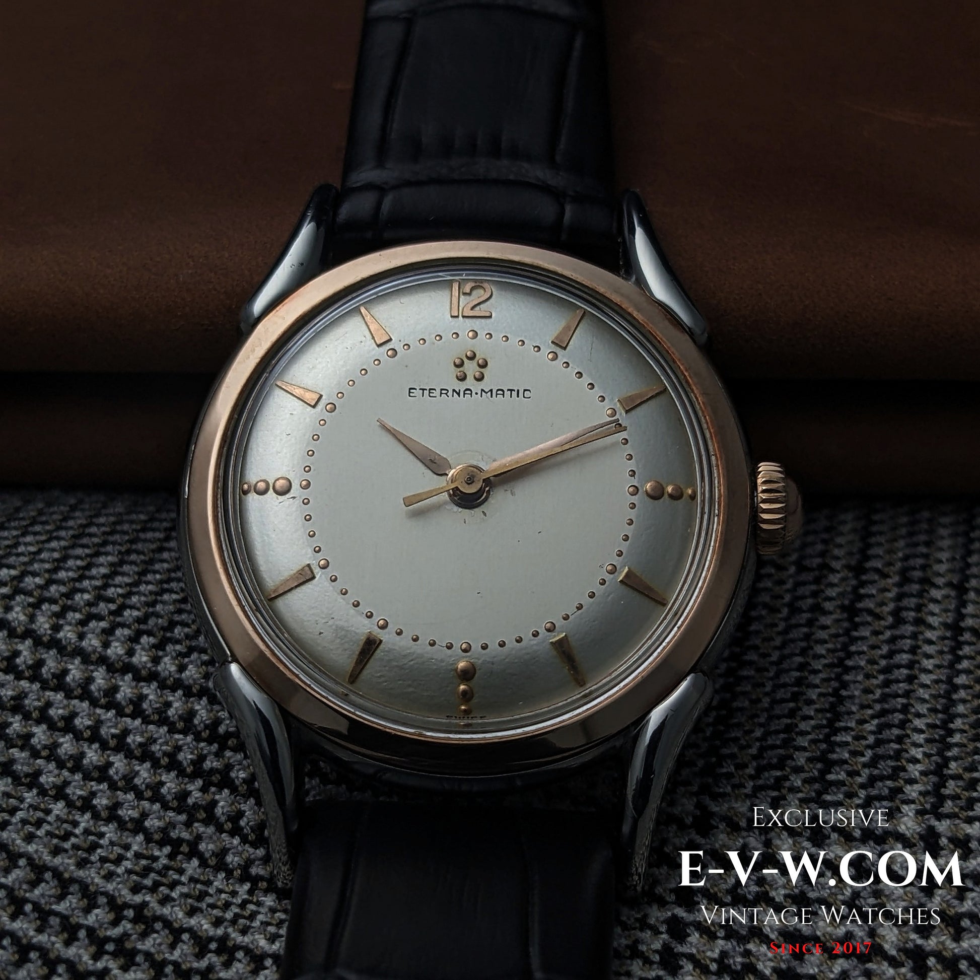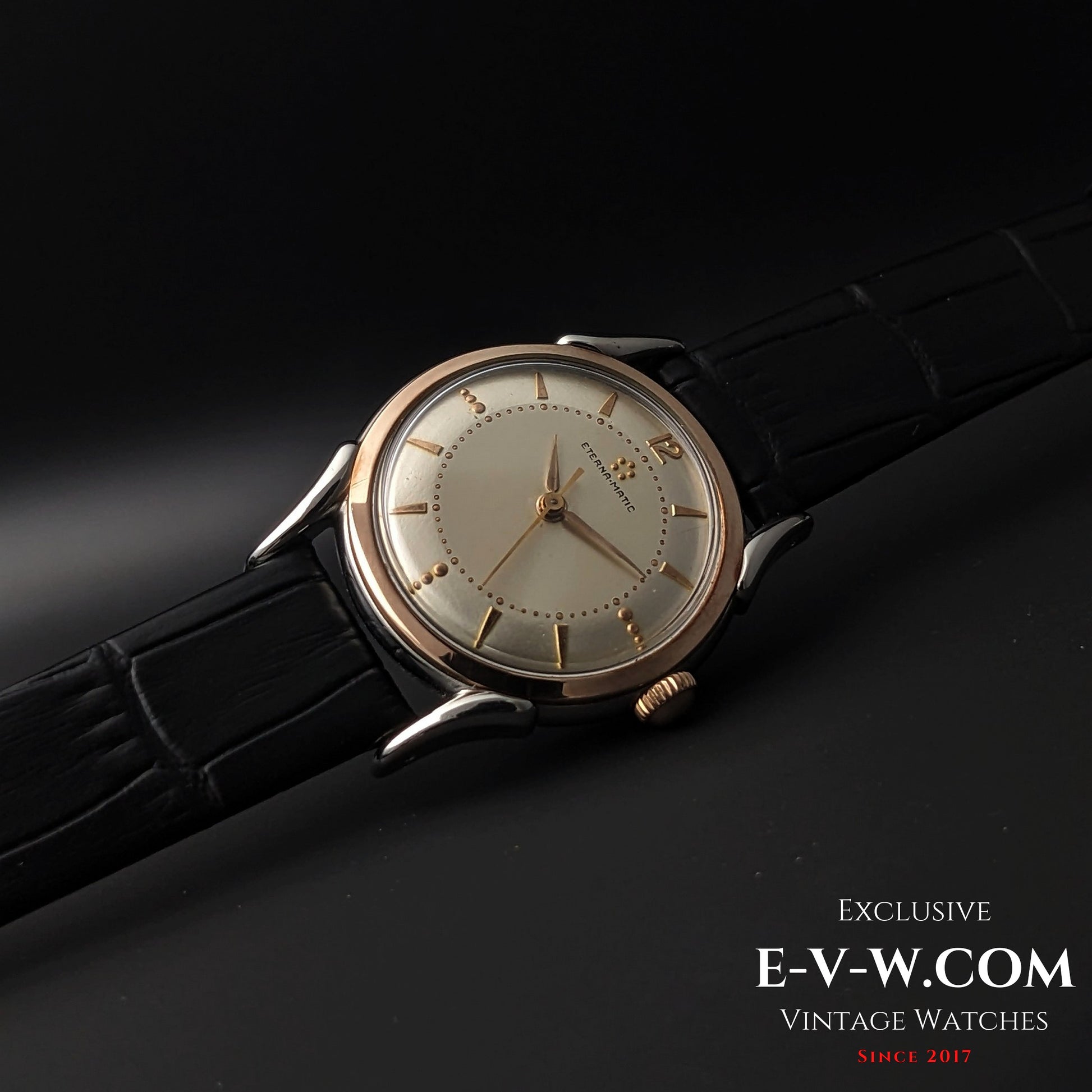 Mouvement automatique Eterna-Matic à cinq billes (première génération) | Boîtier bicolore, cornes élégantes | Calibre 1248T | Année 1950