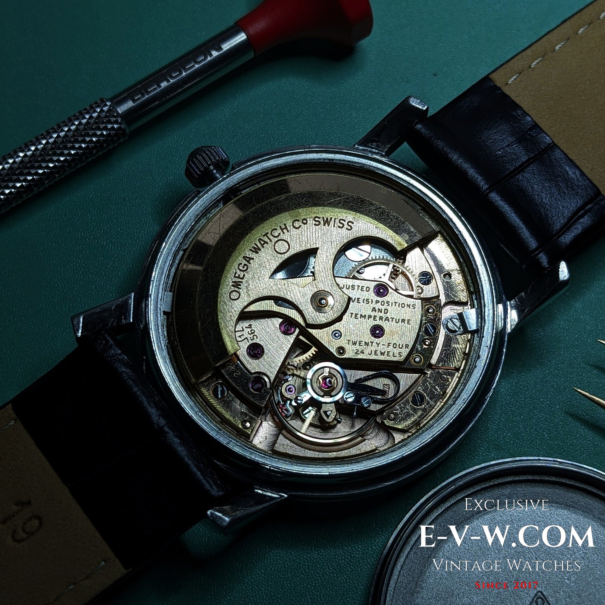 L'année 1966 correspond à la production du chronomètre Omega cal. 564. Une révision effectuée le 15/07/2025 garantit sa fiabilité. Le numéro de mouvement 24256811 est consigné dans les documents de l'acheteur pour attester de sa provenance.