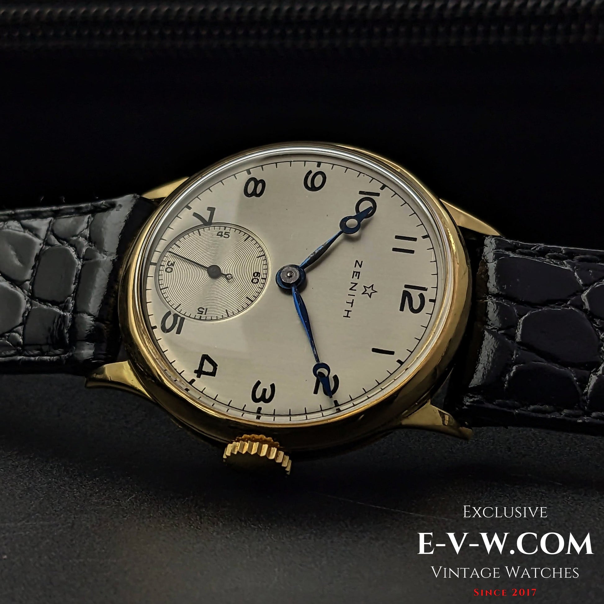 Montre Zenith Officer rare en or 18 carats / Cal. 124 / Vintage 1938