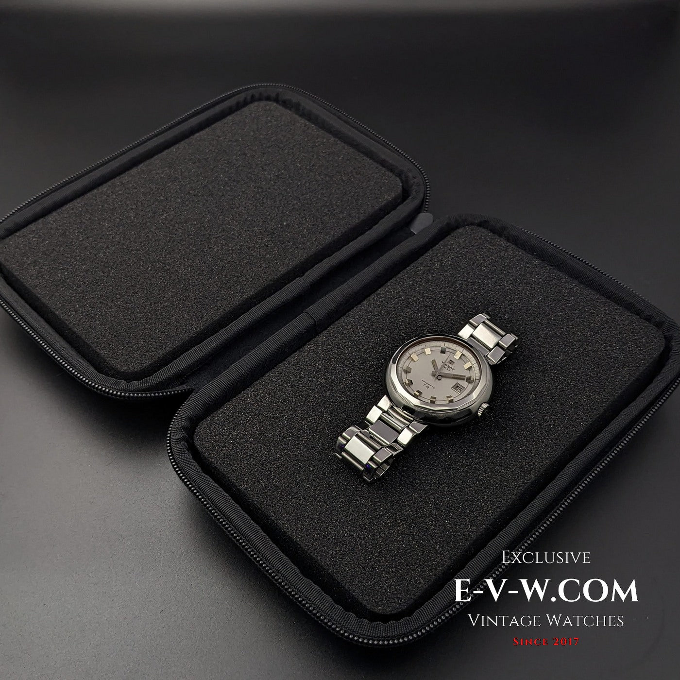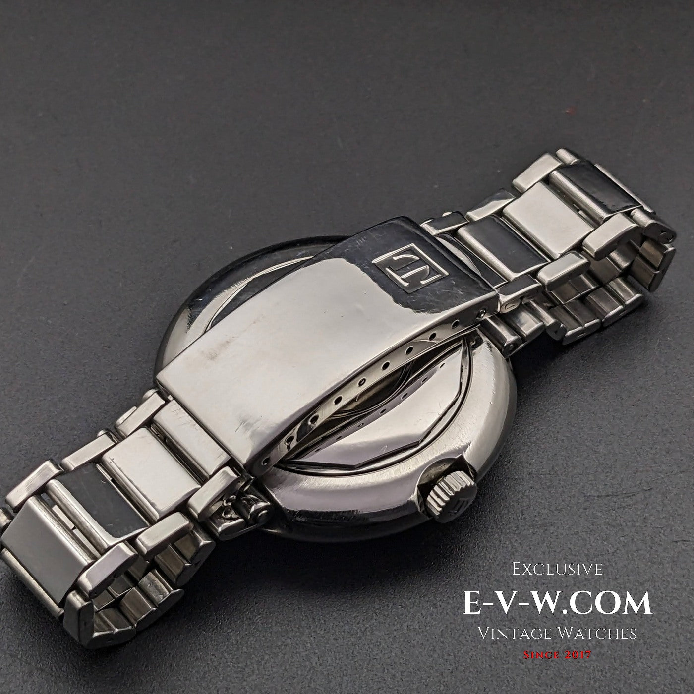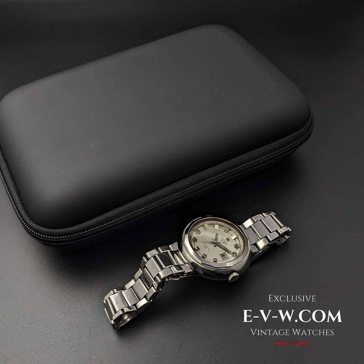 La Tissot T12 « UFO » est de plus en plus recherchée pour sa géométrie unique et sa taille imposante, qui correspondent parfaitement au goût actuel pour les montres de grande taille. En trouver une dans cet état, entièrement révisée et prête à être portée, est une occasion rare de posséder une pièce de design avant-gardiste des années 70.