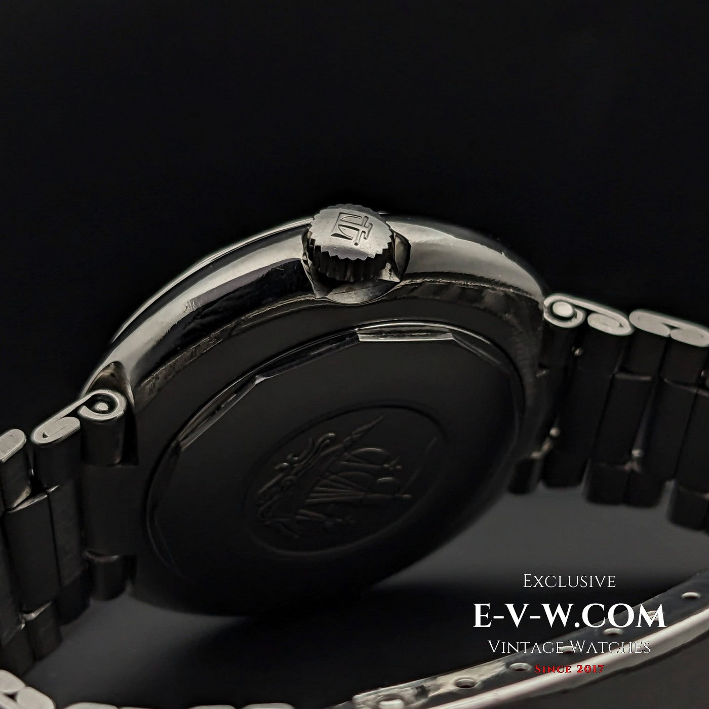Cette Tissot T12 Automatique Vintage de 1971 est une pièce audacieuse qui incarne l'esthétique décalée et robuste des années 1970. Surnommée « OVNI » par les collectionneurs en raison de son boîtier massif de 44 mm sans cornes, elle se porte avec élégance au poignet, offrant une présence que peu de montres vintage peuvent égaler.