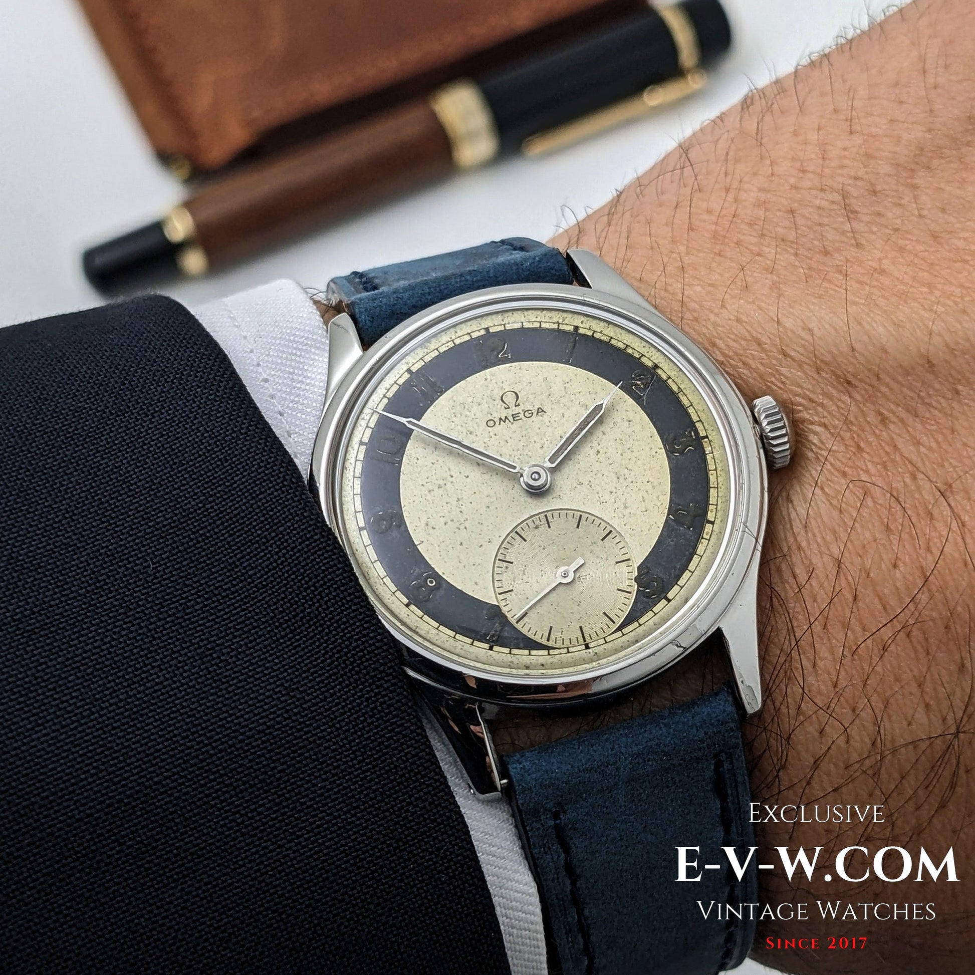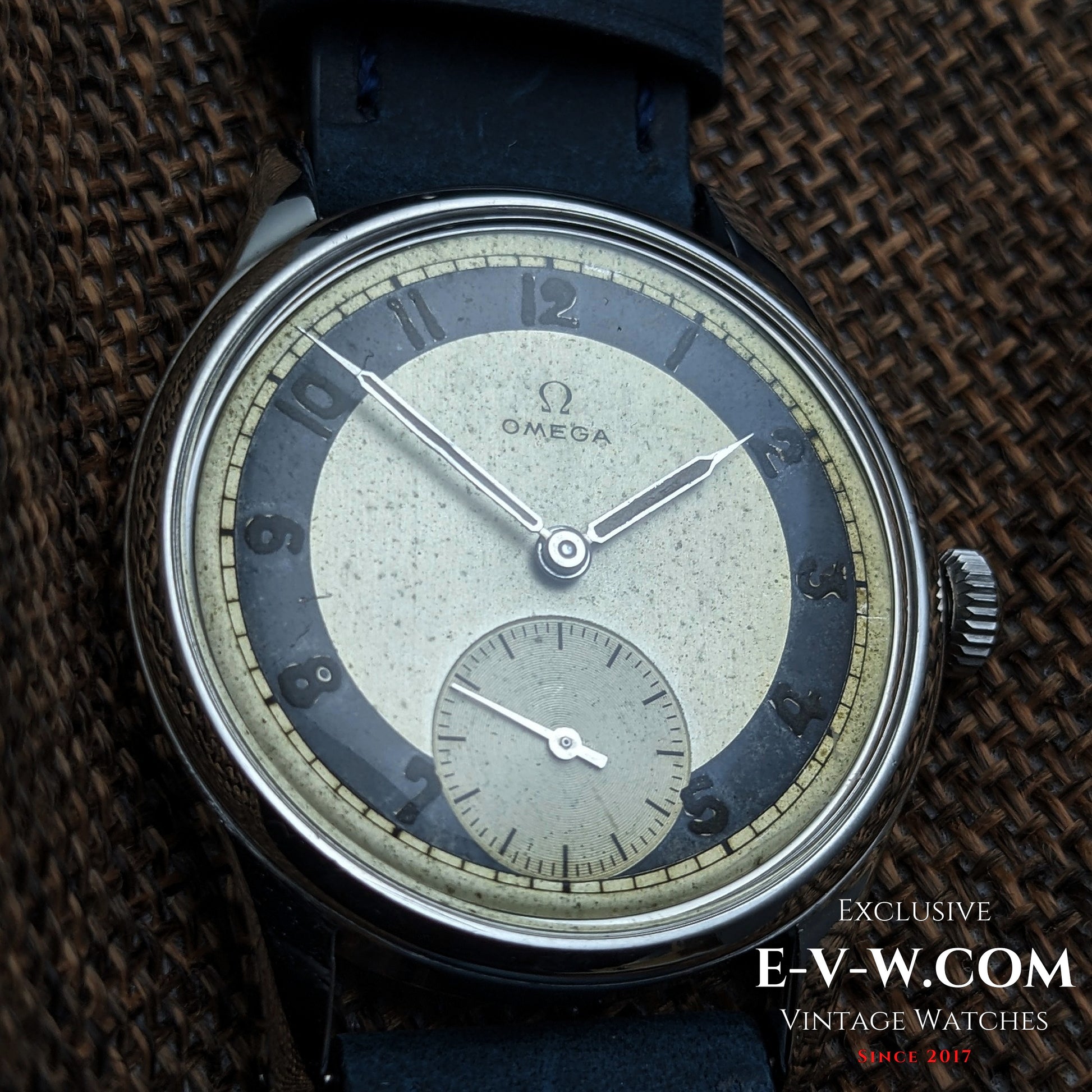 Née dans l'ombre de la guerre – épurée, lisible et facile d'entretien : exactement ce que les collectionneurs attendent d'une Omega en 1944. Cette remarquable variante « Bullseye » représente le summum de l'utilité en temps de guerre, avec son cadran bicolore à fort contraste conçu pour une lisibilité immédiate même sous pression. Le fond vissé, une caractéristique haut de gamme pour l'époque, offrait une protection optimale au mouvement.