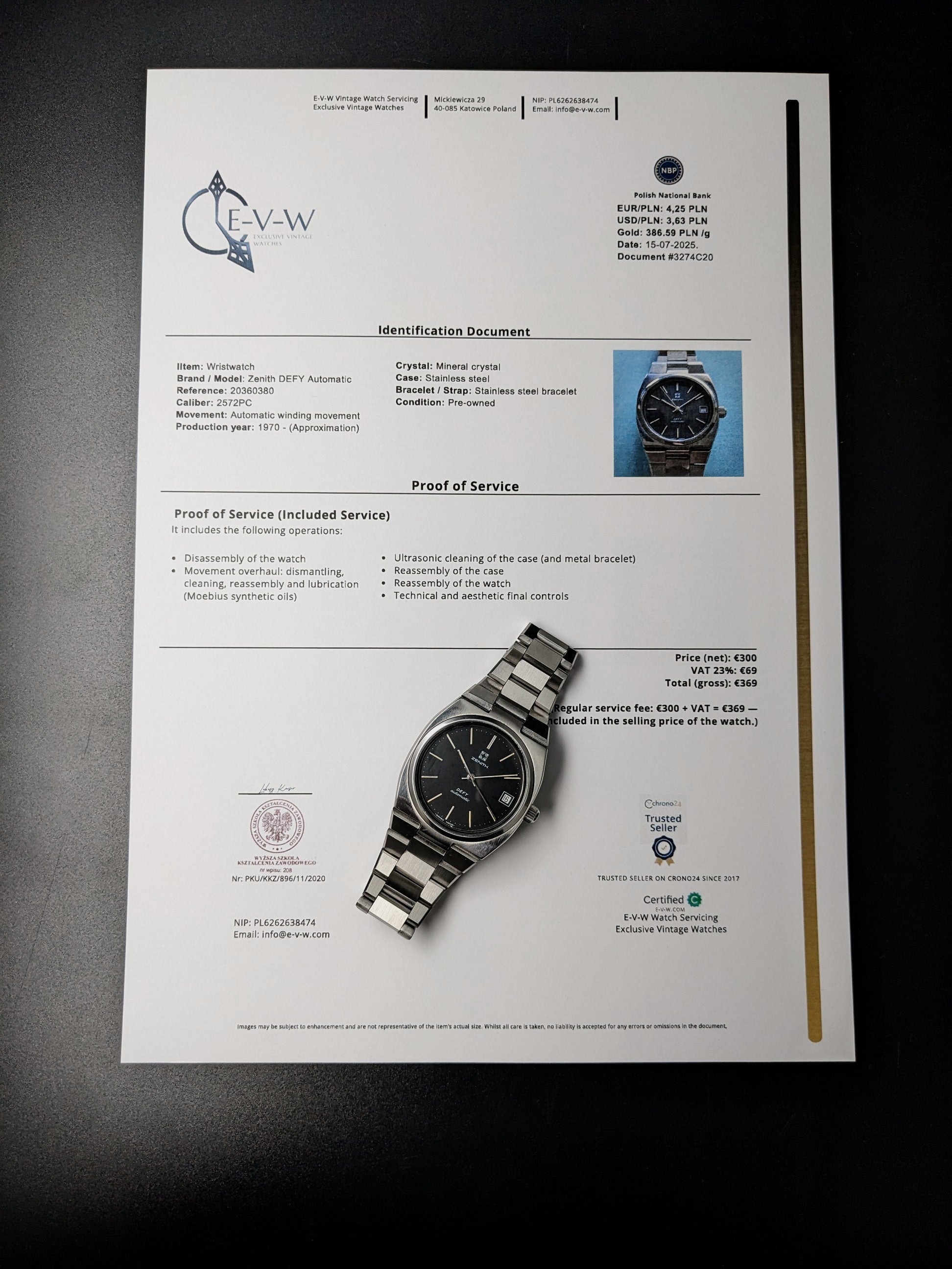Mouvement : Zenith Cal. 2572PC automatique (révisé le 15-07-2025).